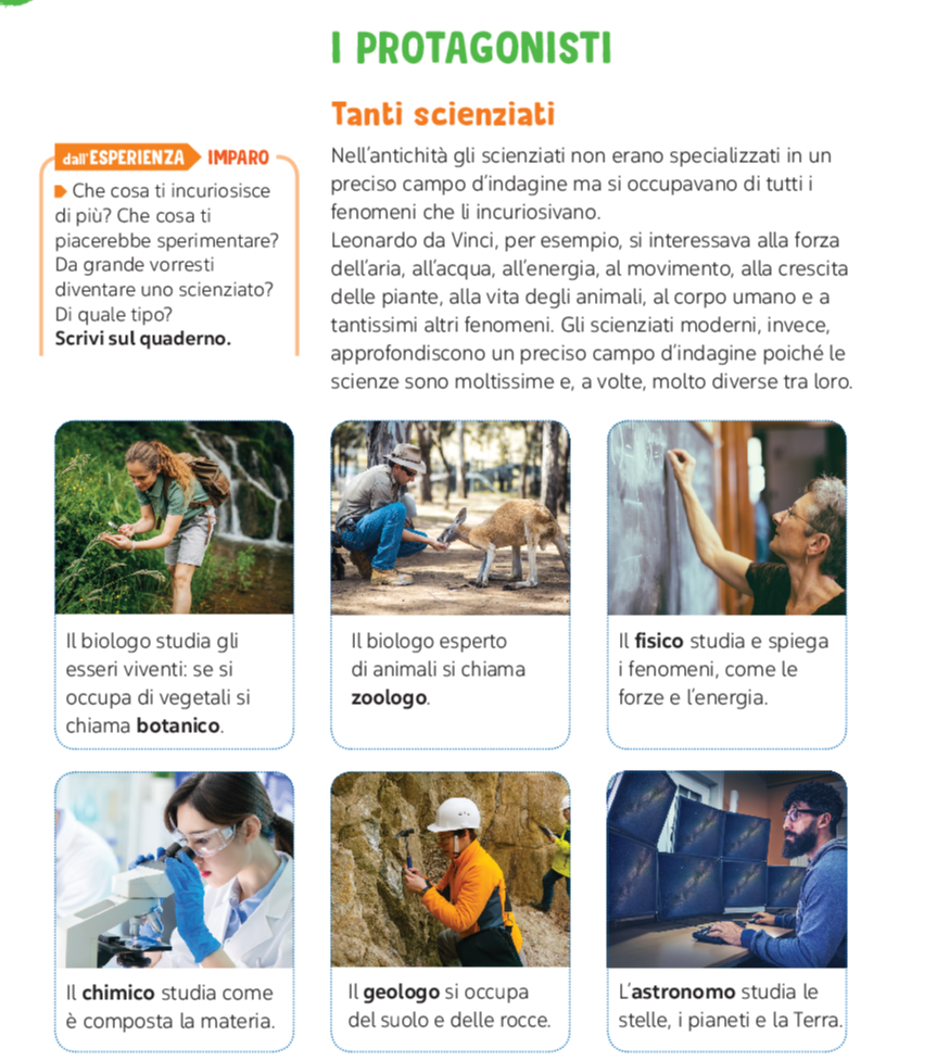 Per indagare i vari aspetti della realtà e i fenomeni naturali, sono nate diverse scienze, ciascuna delle quali ha un suo campo d’indagine e degli studiosi di riferimento che usano tecniche e strumenti specifici. Scopriamo insieme chi sono e quali strumenti utilizzano.