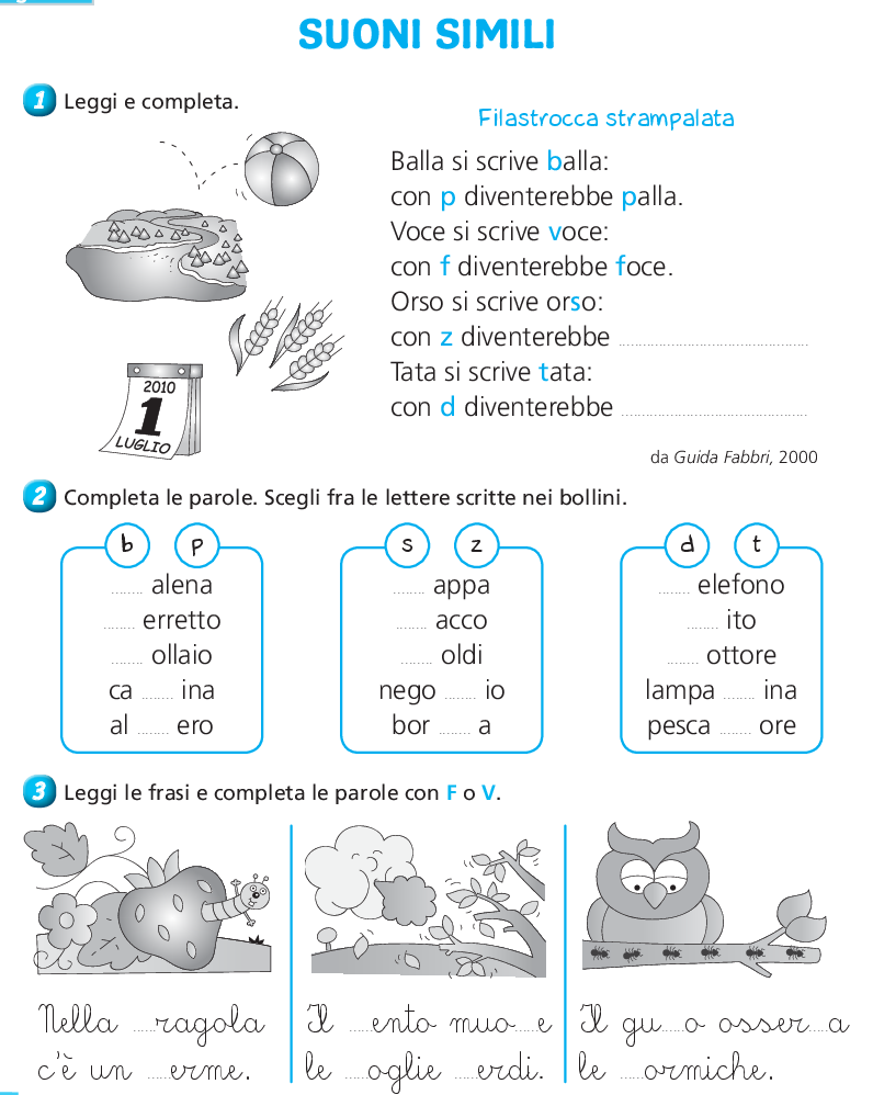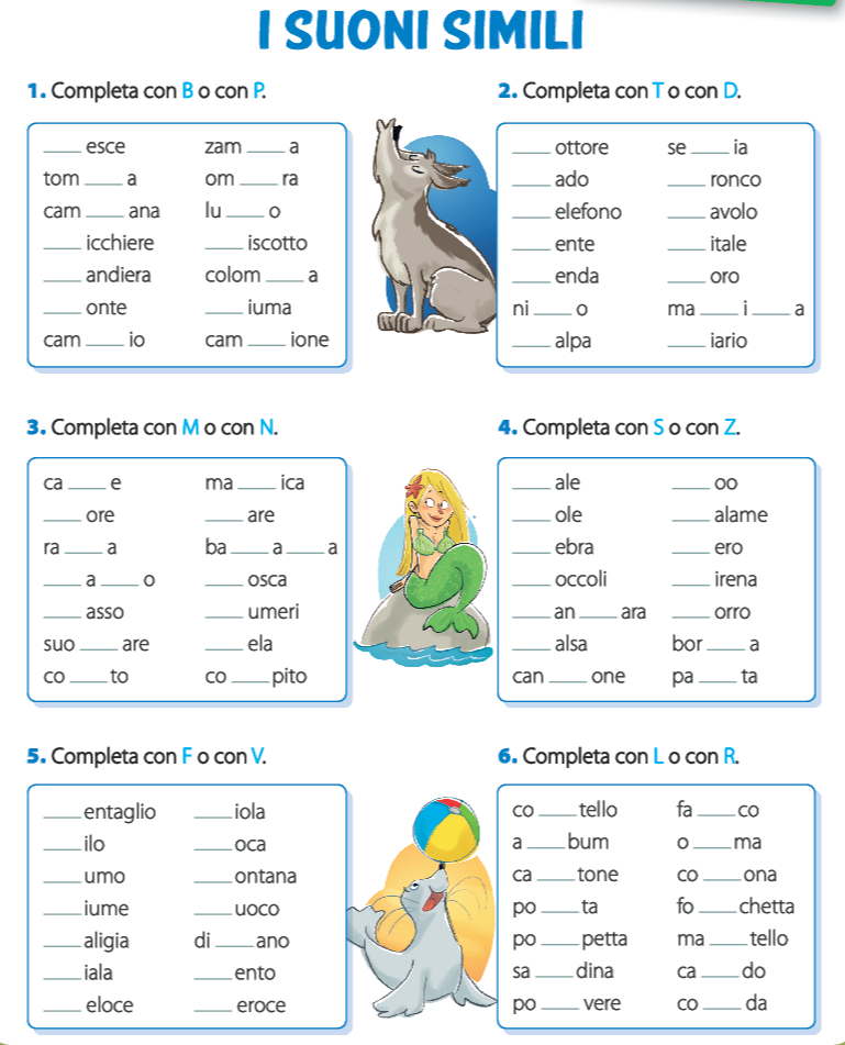 - Riconoscere le coppie di suoni simili (p/b, d/t, m/n, f/v, s/z)