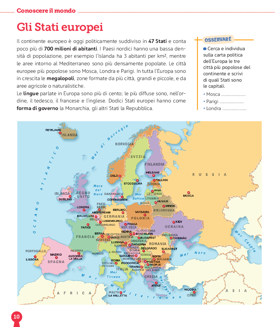 Impariamo a conoscere i principali paesi europei e le loro capitali.